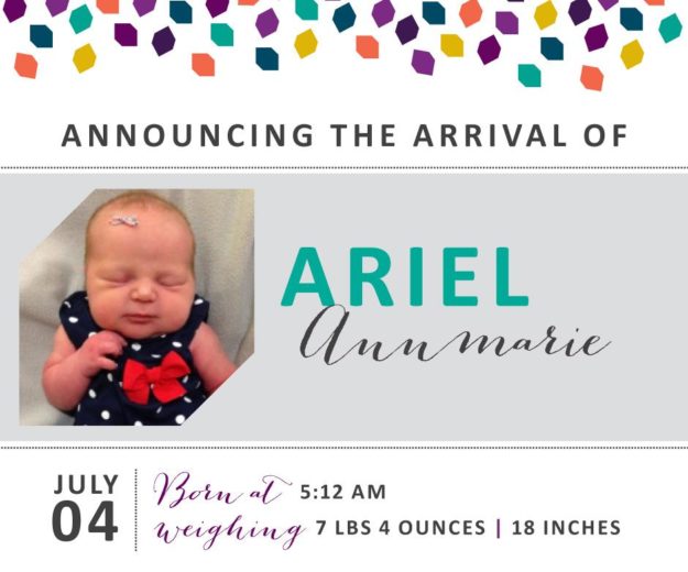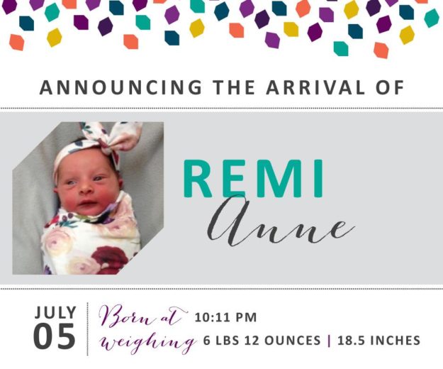 July 17, 2019 at 09:36 am 7 pounds, 8.5 ounces 21 inches Delivering Physician Shawn Richmond, MD